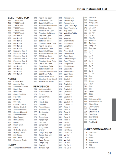 In truth the drum module was designed by a company called Medeli and is internally exactly like their DD512 module. I’ve made it easy for those of you looking for the full drum kit list and you can see them below. As well as the full manual here for download.